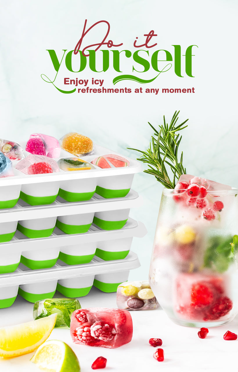 Ice Cube Tray with Lid, Ice Bin, Ice Scoop, Ice Tong, Drinking Straw